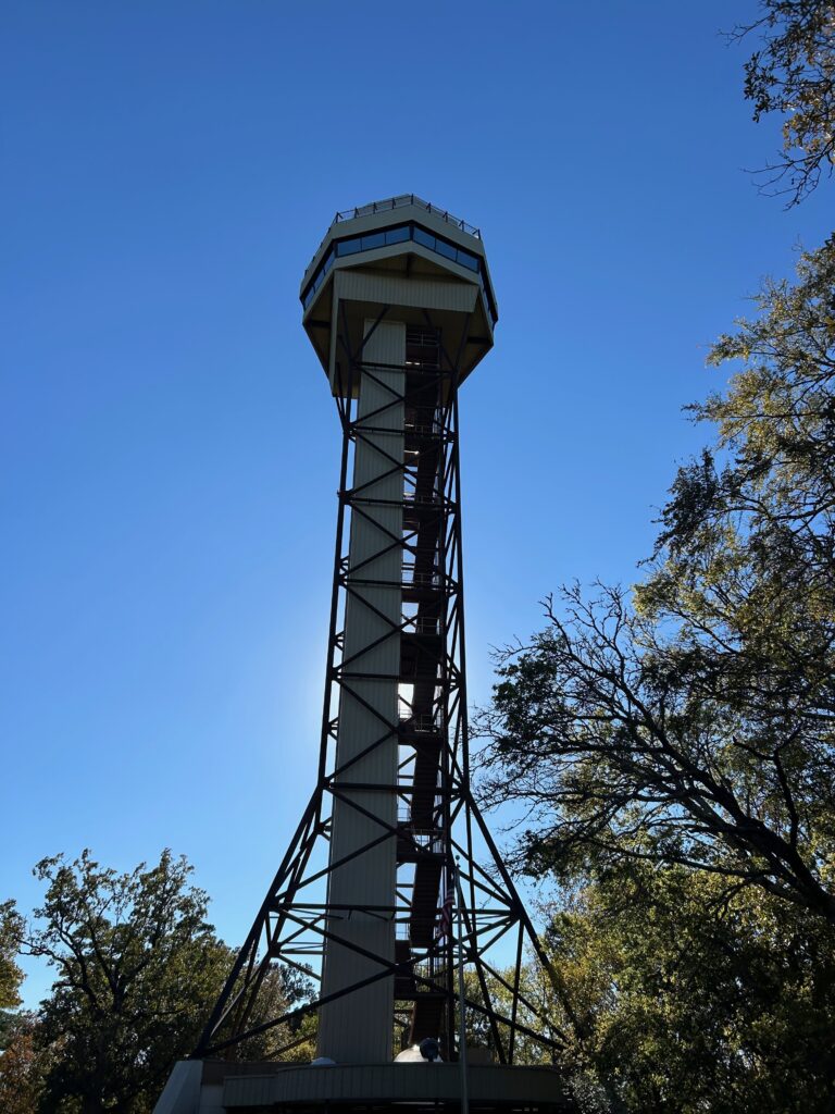 This observation tower stands in the place of several earlier towers built on the top of the mountain. The first was a wooden structure built in 1877. Thankfully, this latest edition includes an elevator….