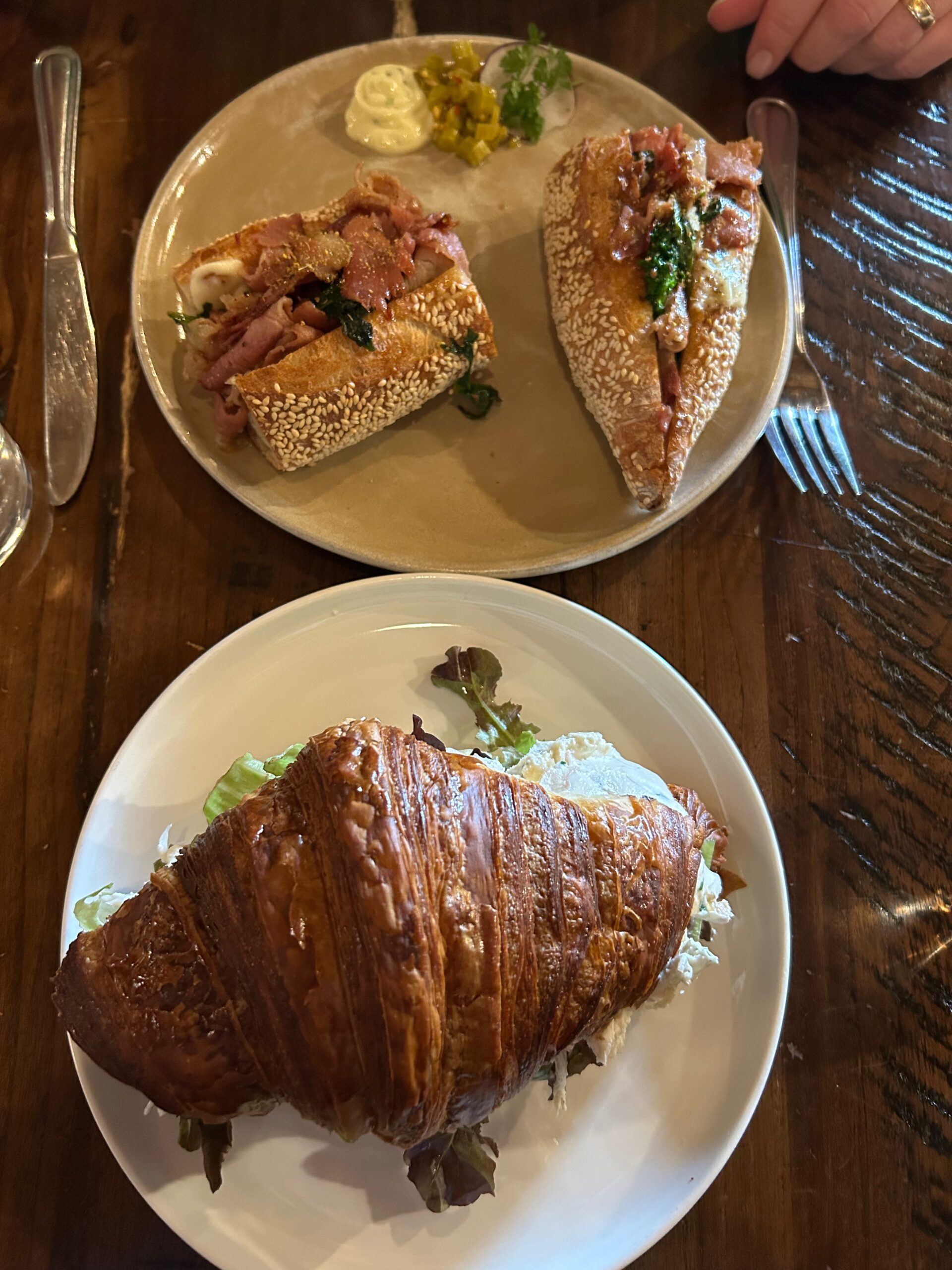 I had a smoked white fish salad on croissant and Russ had a smoked pork sandwich on a baguette.