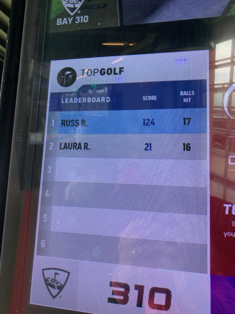We had dinner with Sarah and Jack and then on Thursday, Russ used up some Top Golf gift cards that Sarah had gifted him in the past.