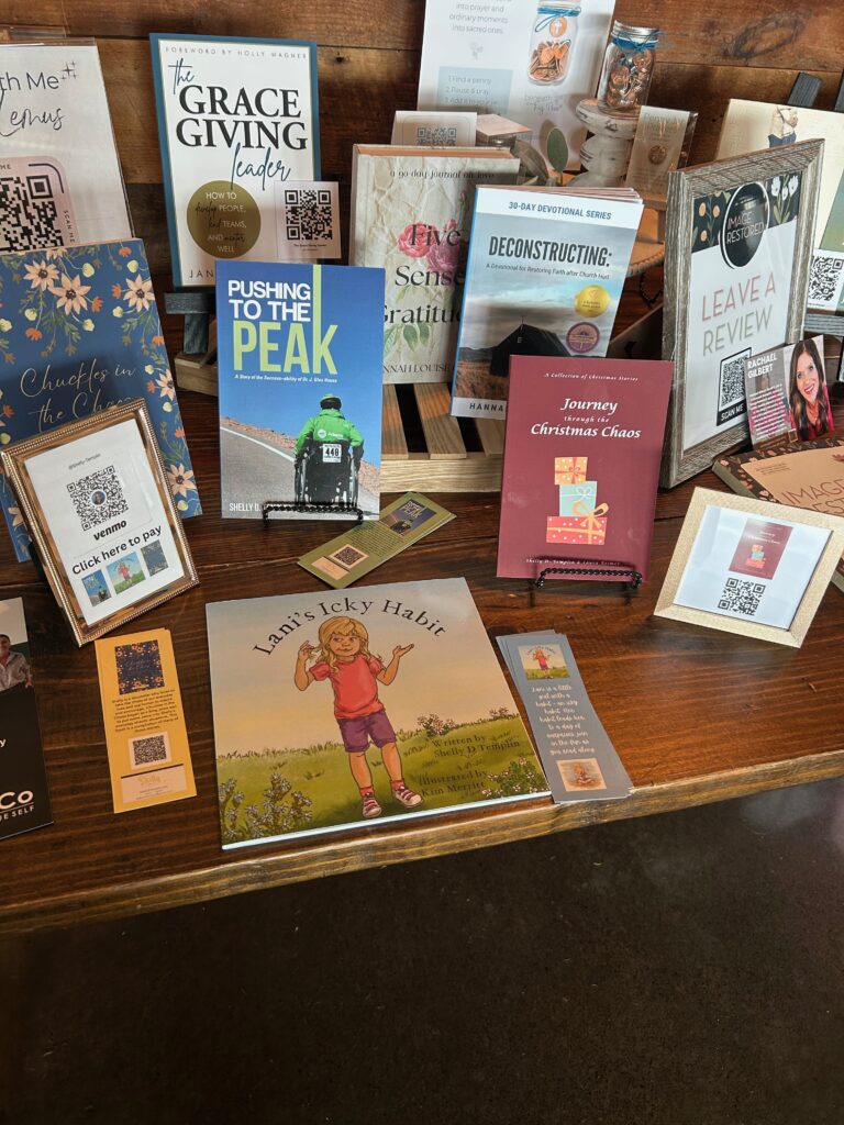 You can see Shelly has a few books – all of which you all need to check out, but it really choked me up to see a book with my name on it sitting there.