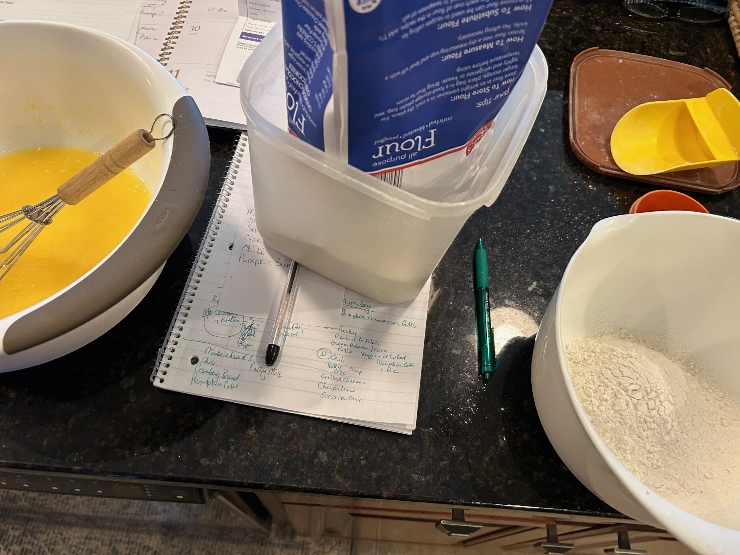There I was this morning, emptying a flour bag into the container, with a notebook jammed under it, a sink full of dishes and every spoon and measuring cup used and I thought of my mom.