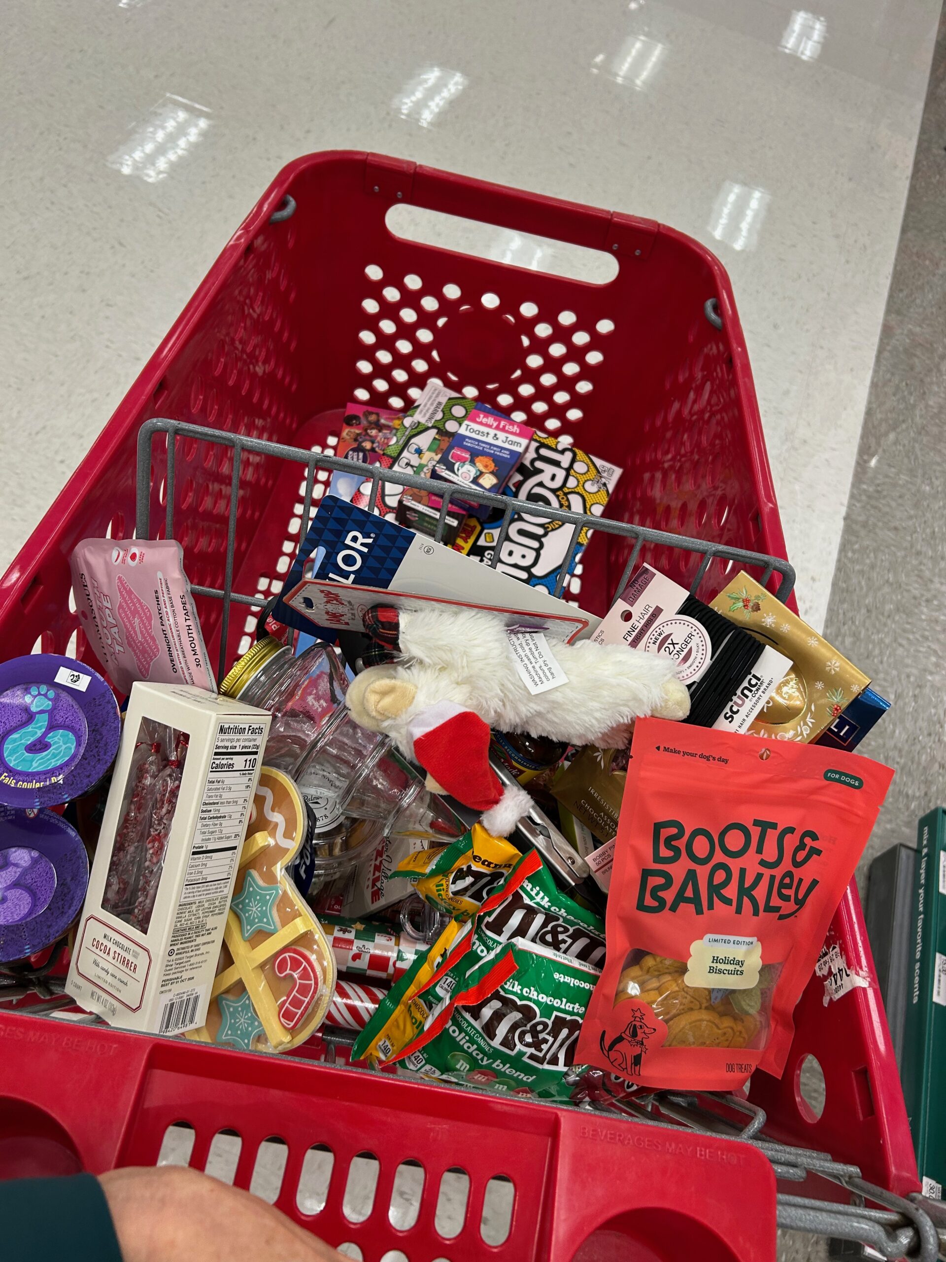 So it was I found myself in Target this morning with a general topic list of categories…ie, stockings, trivia weekly gifting (more about that later) and kid’s gifts. I may have looked like I was randomly throwing things in my cart, but there was purpose behind it.